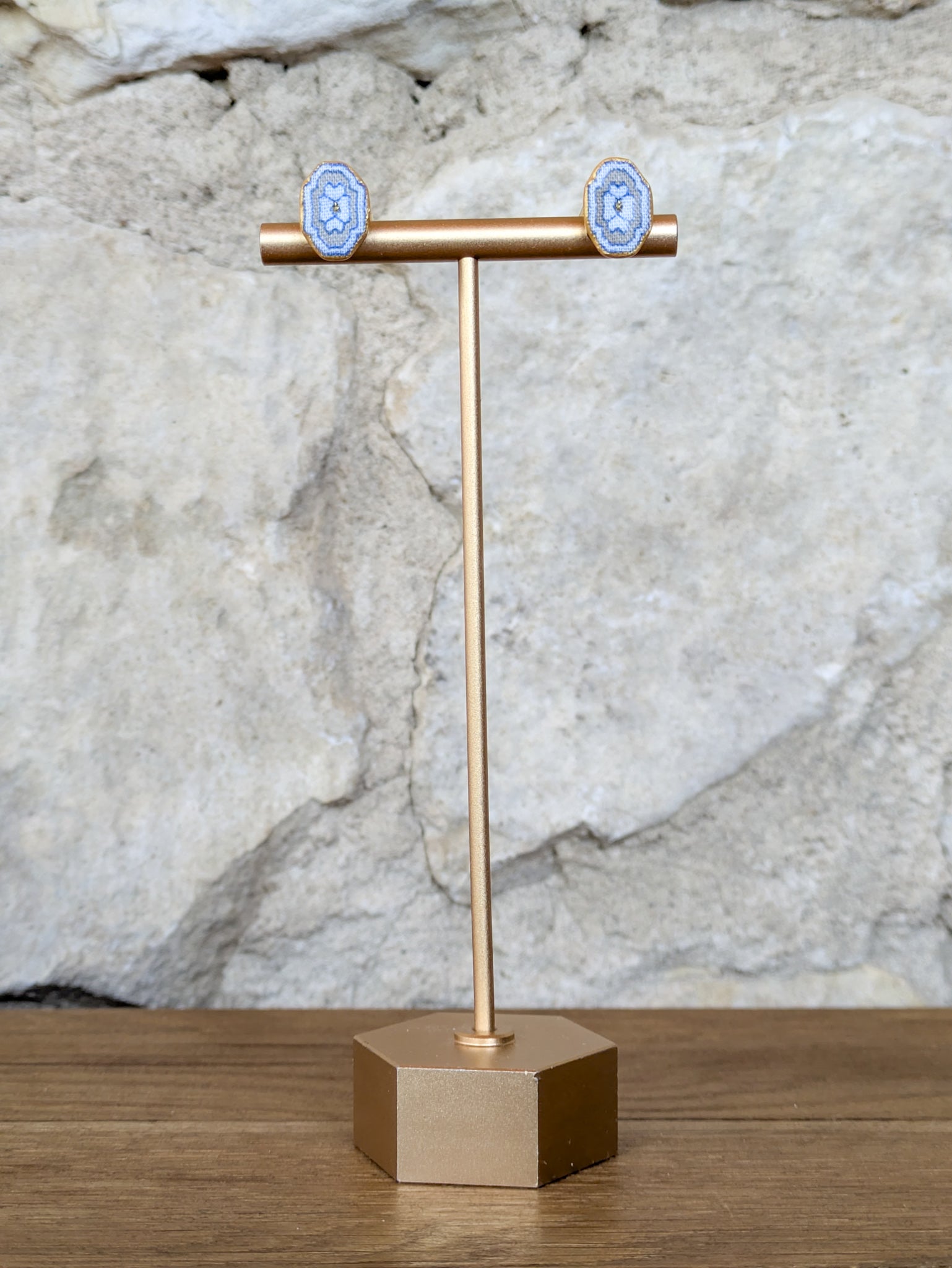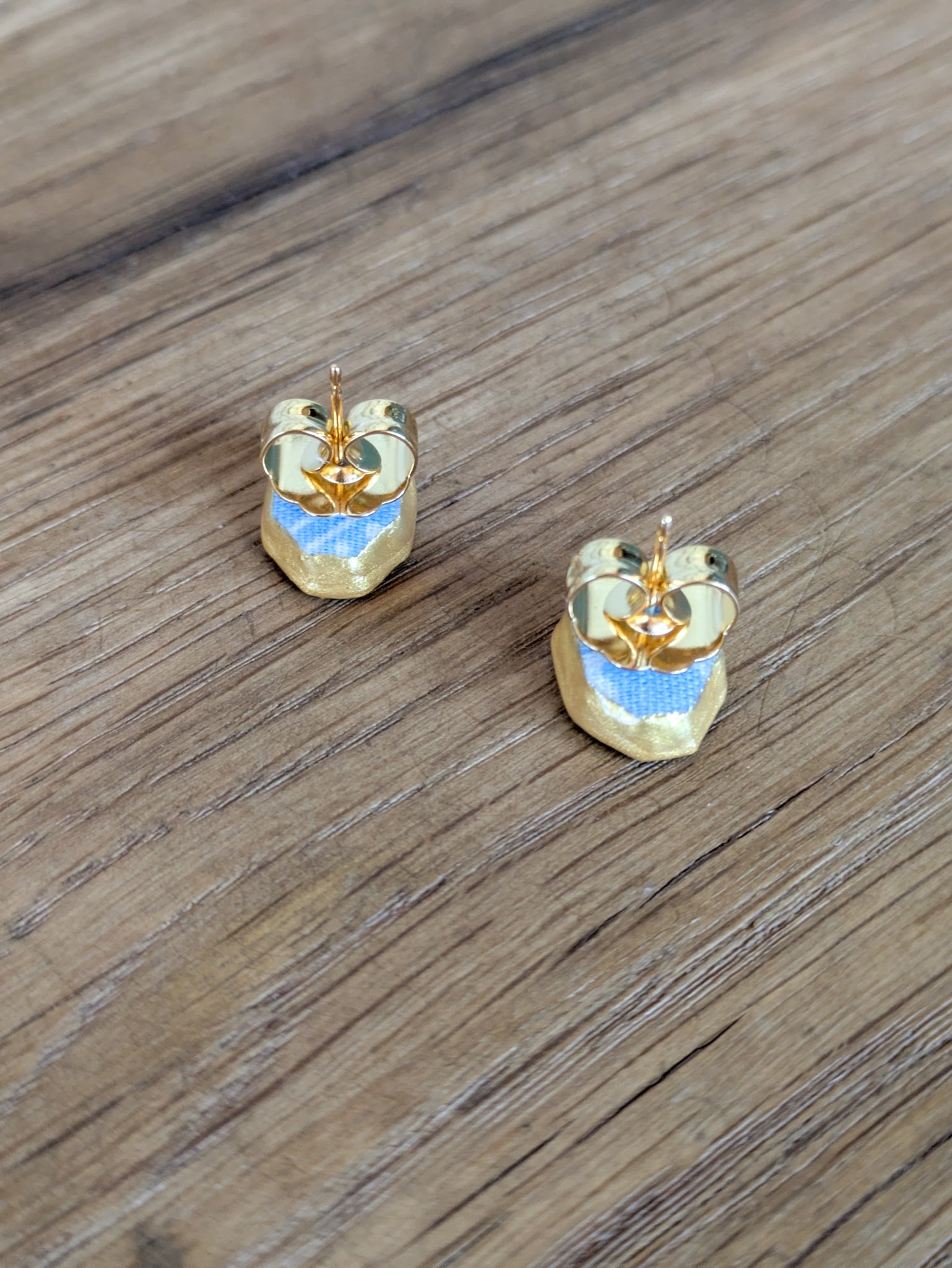 The Henrietta Stud Earring was handmade using vintage fabric. Each piece was sewn, cut, and painted by hand at the Katie Lynne studio in San Antonio, Texas.