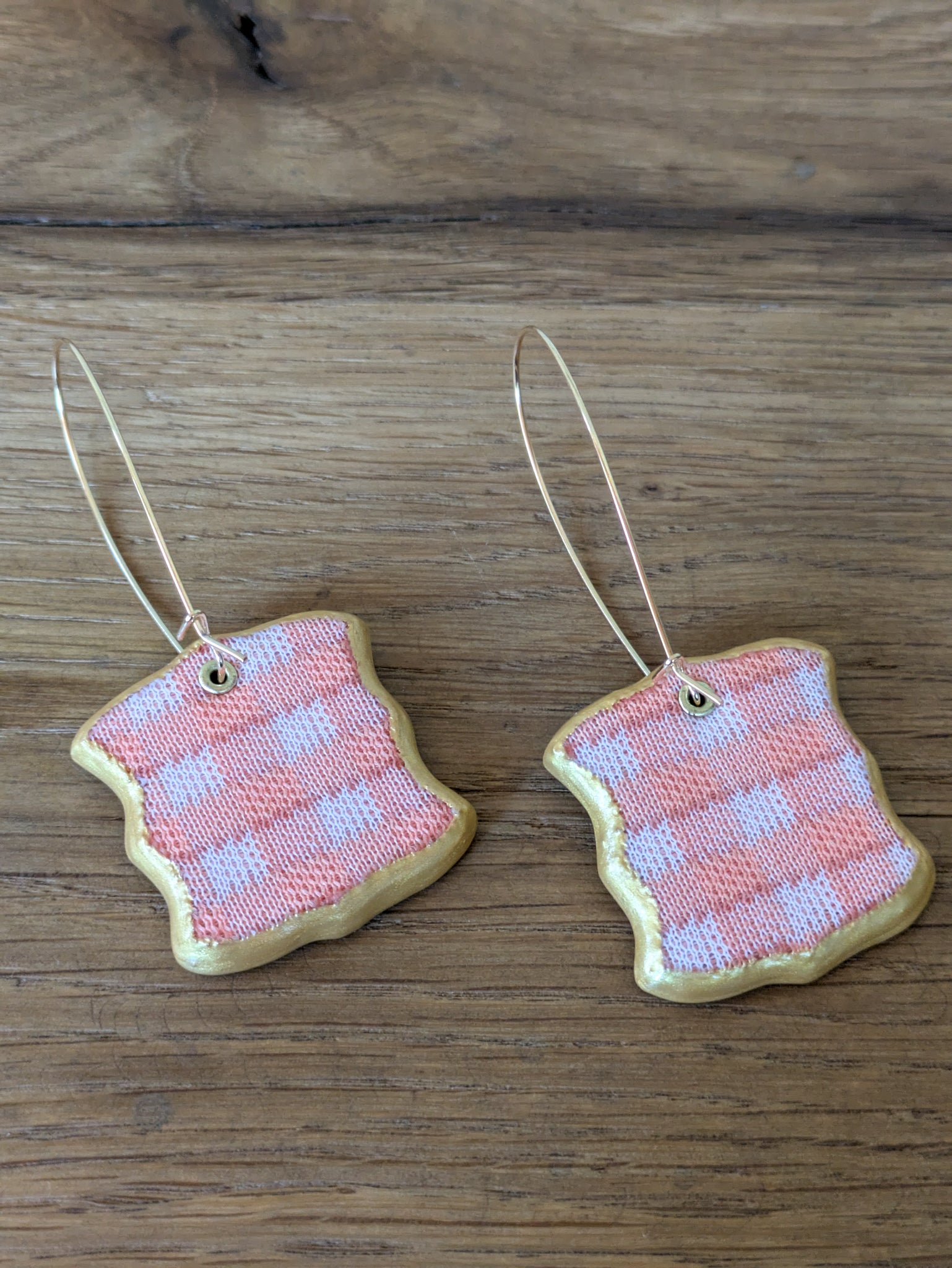 The Jane Drop Earring was made using vintage fabric from Gloucester, Virginia. Each piece was handsewn, hand cut, and hand painted at the Katie Lynne studio in San Antonio, Texas.