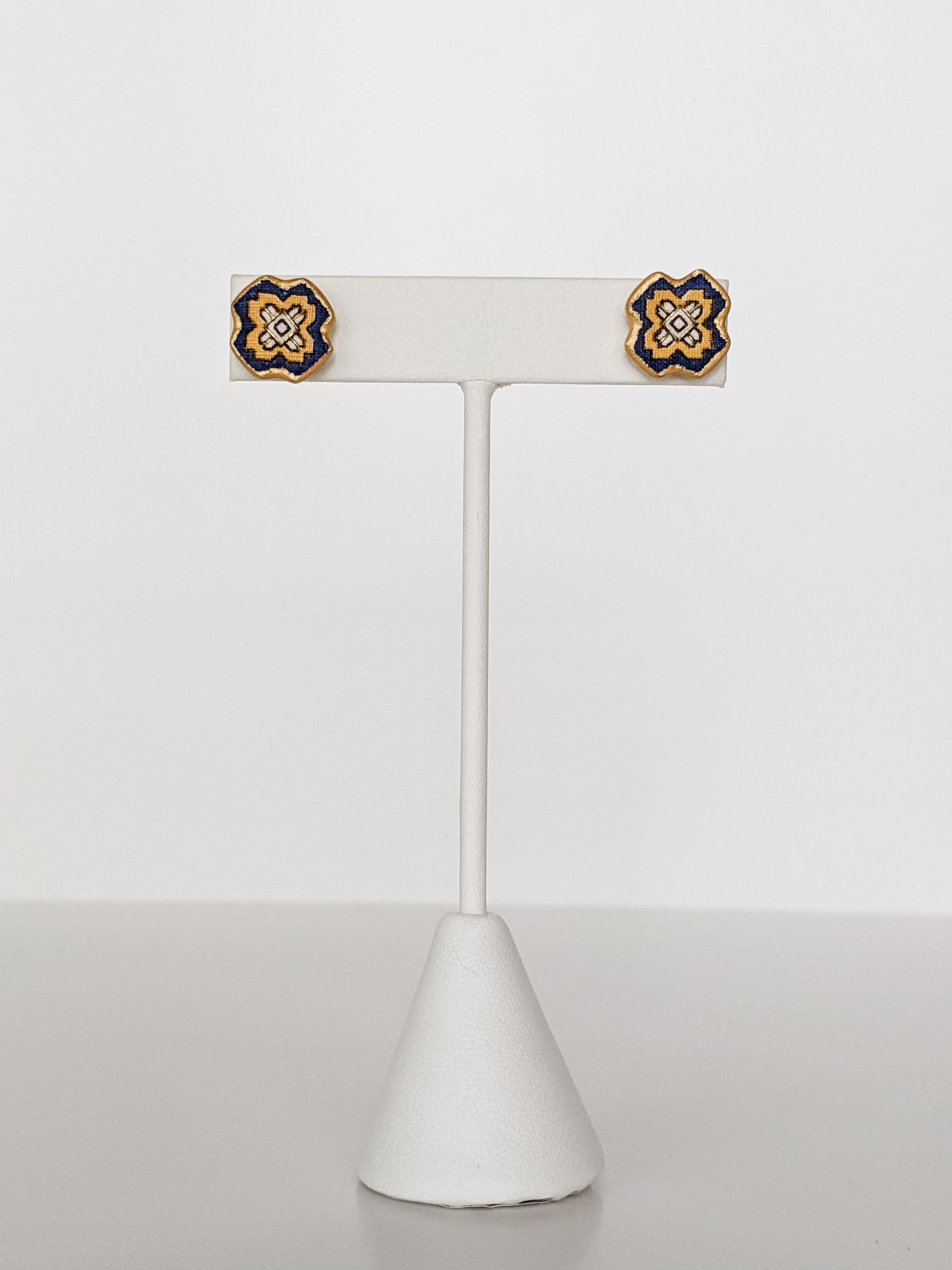 The Maureen Stud Earring was made using 1950's fabric from St. Paul, Minnesota. Each piece was handsewn, hand cut, and hand painted at the Katie Lynne studio in San Antonio, Texas.
