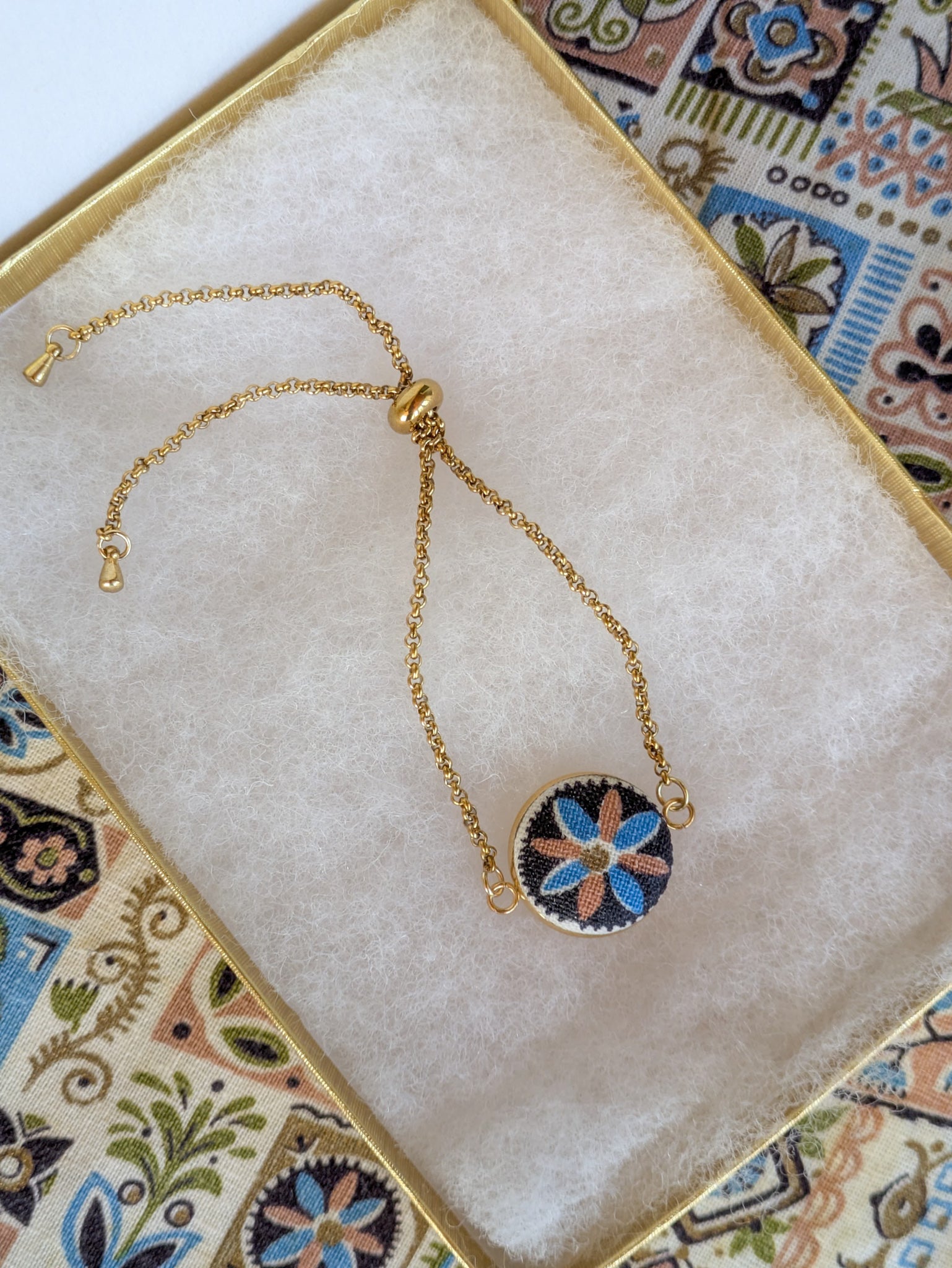 The Olivia Bracelet was handmade in San Antonio, Texas using vintage fabric.